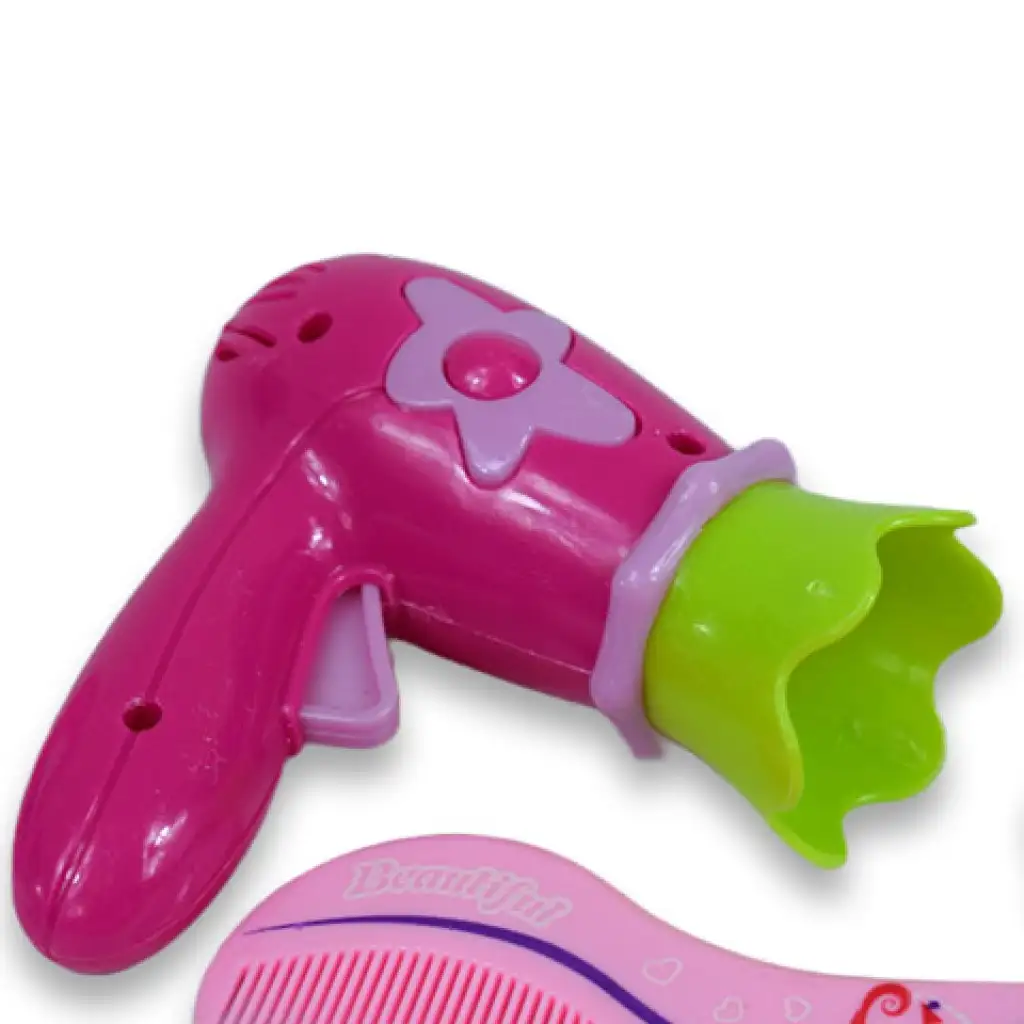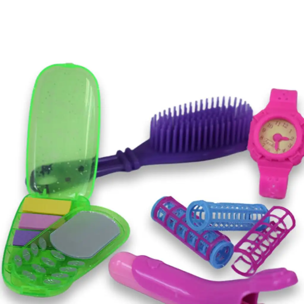 Engedd gyermekednek hogy betekintést kapjon a szépítkezés világába ezzel a szuper rózsaszín játékszettel. A szett tartalmazza a legfontosabb kiegészítőket, amelyek segítségével tökéletes frizurákat és csodás sminket varázsolhat gyermeked magának vagy barátainak. A rózsaszín fésű és hajkefe ideálisak a haj rendezéséhez és fésüléséhez, hogy mindig tökéletes legyen a frizura. A tükör segítségével meg is nézheti a frizuráját gyermeked és tökéletes kiegészítője lesz a játéknak. A játék hajszárító és hajgöndörítő a valódi hajformázó eszközök mini változata, további kiegészítői közé tartozik egy játék karóra és egy játék telefon. A telefon nyomógombos lapjának elforgatásával meglepetés vár gyermekedre, ugyanis egy játék sminkszett bújik meg benne. Ezzel a kis kincsesládával még több lehetőség nyílik arra, hogy felfedezze kislányod a sminkelés világát és kipróbálja a legújabb trendeket.