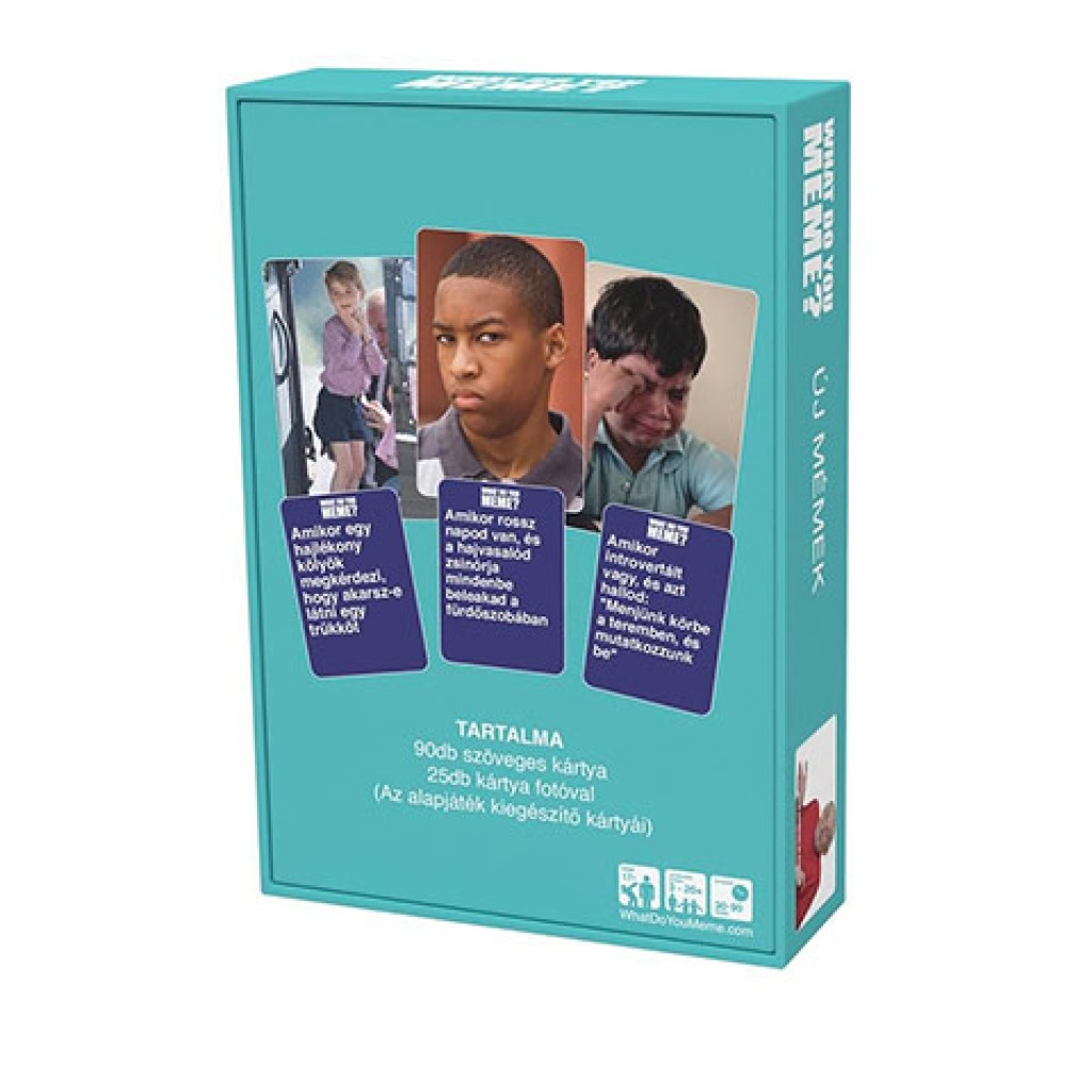 A What Do You Meme? társasjáték eléggé elterjedt az utóbbi időben, nem is csoda, hiszen a fotós kártyák és a szöveges kártyák, jobban mondva meme kártyák mindig egy vicces hangulatot teremtenek a játékosok között. Ezeknek az a feladatuk, hogy egy fotós kártyához megtalálják a legjobb szöveges kártyát, amely hatására elnyerjék a kört és egyben a pontot is. Ez a csomag az első kiegészítő a What Do You Meme? – A kemény magnak társasjátékhoz. 25 képkártyát és 90 szövegkártyát tartalmaz, amelyeket belekeverhetsz az eredeti pakliba, így még izgalmasabbá téve a játékot.