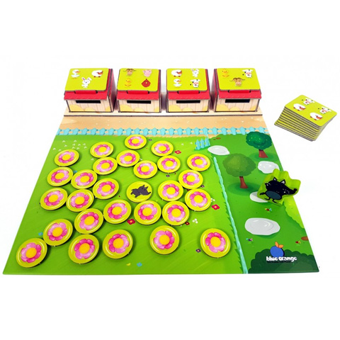 A lehető leggyorsabban be kell terelni az állatokat a pajtába, mert a farkas már a közelben ólálkodik, de a siker érdekében meg kell jegyezni, hogy melyik pajtába már kit sikerült betenni, és hogy a réten merre felé sompolyog a farkas. Farkas Úr közeledik a réthez, és a kicsiknek nincs más dolga, mint egyesével felfordítani a virágkorongokat, és az alá bújt állatokat a megfelelő pajtába vezetni. Csak azt kell fejben tartaniuk, melyik pajtában ki van már benne, mert többen nem férnek be. Ráadásul a virágok alatt bújik meg a farkas is, ha azt fordítják meg, az éhes lompos eggyel közelebb lép a farmhoz.