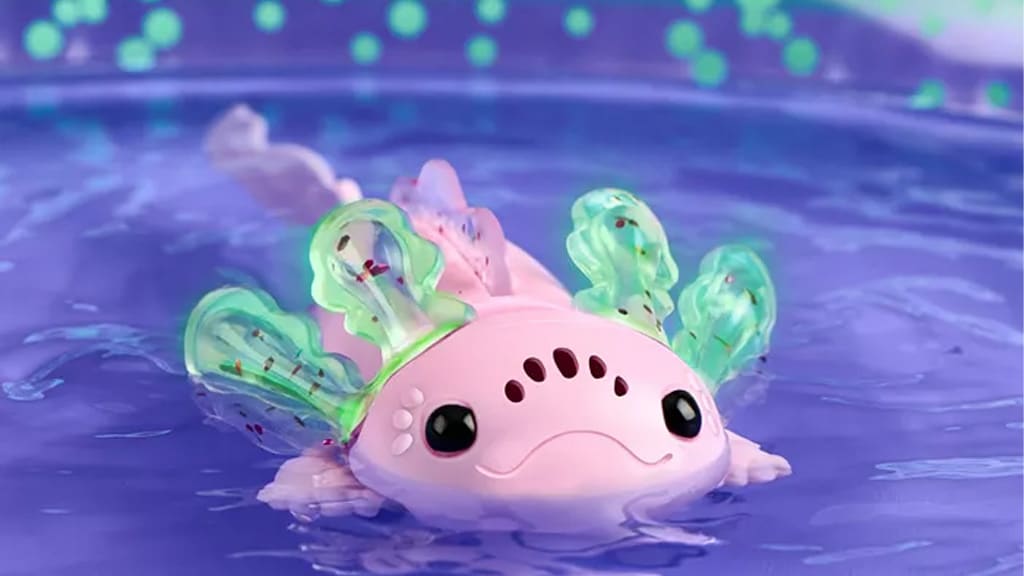 Ha a gyerekek megsimogatják a fejét (és aktiválják a hasérzékelőt azzal, hogy a kezükben tartják), az axolotl különböző színekkel jelzi a gyerek hangulatát. Egy szín-hangulat útmutató is rendelkezésre áll — a kék álmos, a lila boldog, a zöld bolondos, és így tovább. Amikor a gyerekek csak a fejét simogatják anélkül, hogy megérintenék a hasérzékelőt, a kis axolotl egy dalt énekel. A játék az inflálható medencében is képes mozogni a vízben.