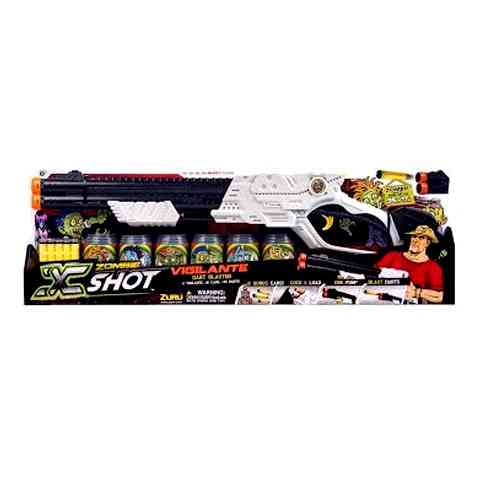 Az XShot Shotgun fegyver a szivacstöltényes kilövők között igen jó helyet foglal el, hiszen meg van az a különlegessége, hogy pontos célzás esetén 17 méterre is pontosan lő, nem hord félre. Ez a játék, tulajdonságai és tartozékai által tökéletesen alkalmas arra, hogy a egy izgalmas délutáni verseny alkalmával összemérjék tudásukat a játszani kívánó gyerekek. A fegyverhez plusz lövedék és zombi mintázatú sörös dobozok is vannak, mely utóbbiból piramist lehet építeni.