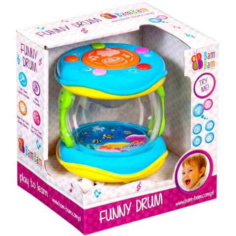 A minidob egy tengeri akváriumra hasonlító belső térrel rendelkezik amely villogni kezd, ha a tetején található gombokat nyomkodod. Interaktív funkcióinak köszönhetően remek szórakozásban lehet részed, nyomd meg a piros bekapcsoló gombot majd kezdődhet a játék. A dob tetejének közepén található rózsaszín felülettel ritmusra tudsz dobolni, míg a körülötte található kisebb gombok különböző hangeffektekkel, dallamokkal szórakoztatnak. A játék fejleszti a motorikus készségeket, a szem-kéz koordinációját.