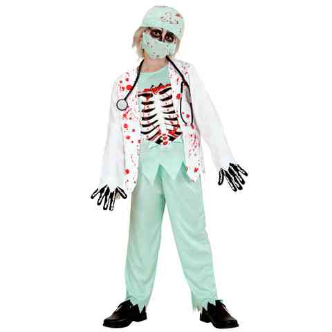 A zombis témák újra népszerűek, hiszen megannyi film és TV sorozat foglalkozik ezekkel az élőhalottakkal. Ez a jelmez egyszerre csinál belőled orvost és zombit, hiszen a jelmez nadrágja, és felső része pont olyan mint az orvosoké, ráadásul maszkot, sztetoszkópot és hajkötőt is tartalmaz, azonban ezek mindegyik vércseppes, és a poló még egy borda mintázatot is kapott. A jelmez kiegészítőjének már csak egy kis arcfestésre és egy véres fegyverre van szükség. Legyen Halloween vagy Farsang, a Widmann kiváló minőségű jelmezei és kiegészítői számtalan lehetőséget kínálnak.