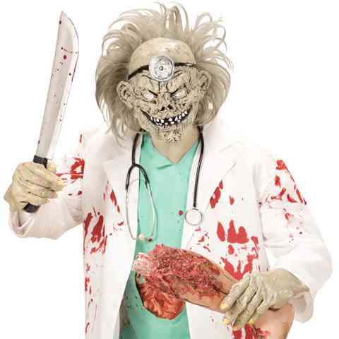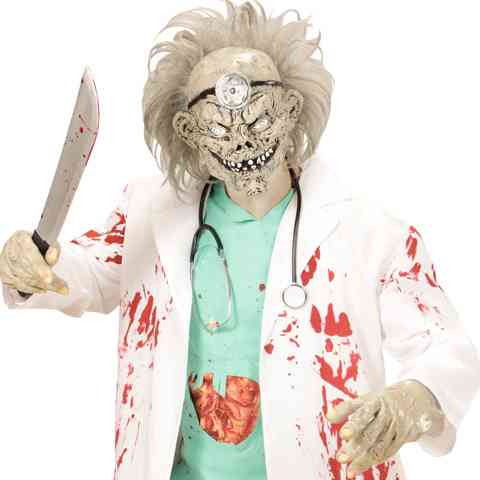 Miután kirobbant a zombi apokalipszis és minden ember élő halottá változott szükségük lesz többek közt orvosokra is, hogy a nagy harcban elszenvedett sérüléseket kezeltethessék. Légy te az első zombi professzor és öltsd magadra a gondosan kidolgozott Zombi orvos maszkot, hogy halálra rémítsd a még élő embereket és kezelhesd zombi társaid sérüléseit. A latex maszk teljes egészében elfedi arcod így senki sem fogja tudni, hogy kivel állnak szemben.